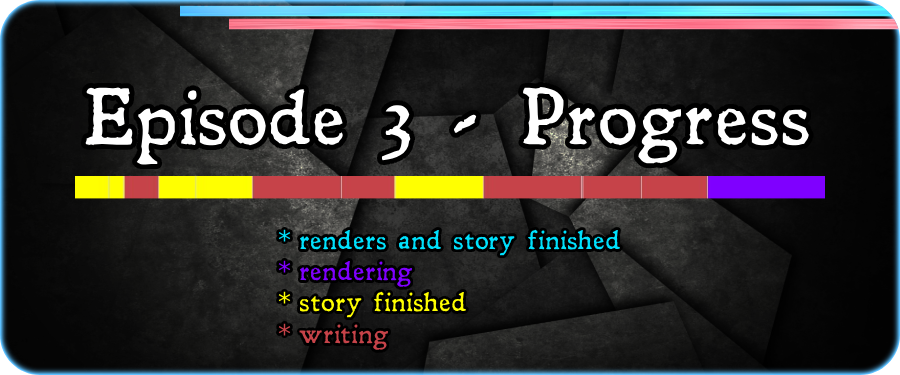 The red parts are written, but I still need to refine them and possibly add some things, so they stay marked in red for now. For the yellow parts, I’m fairly confident the story is final. Those will be the next candidates for rendering. And the purple one is the scene I’ve been working on these past weeks. As you can see, it’s a big one.